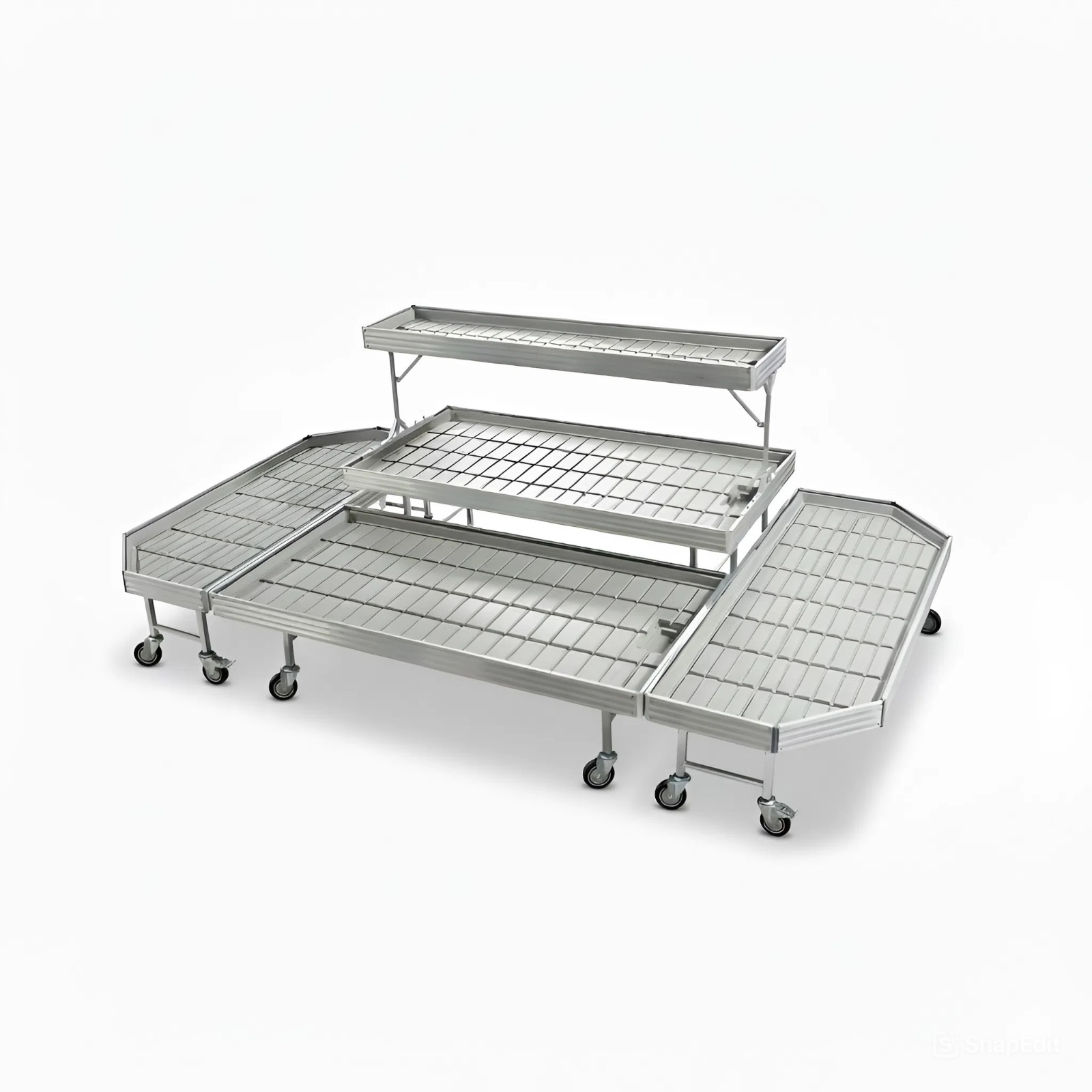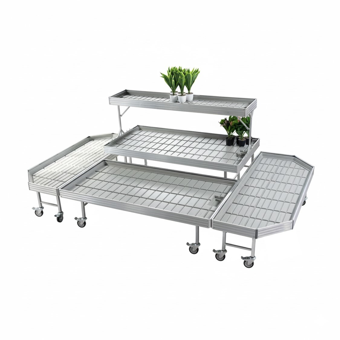 Мы предлагаем вам комплект цветочных стеллажей и комплектующих, который станет отличным решением для организации пространства в вашем садовом центре или питомнике растений.