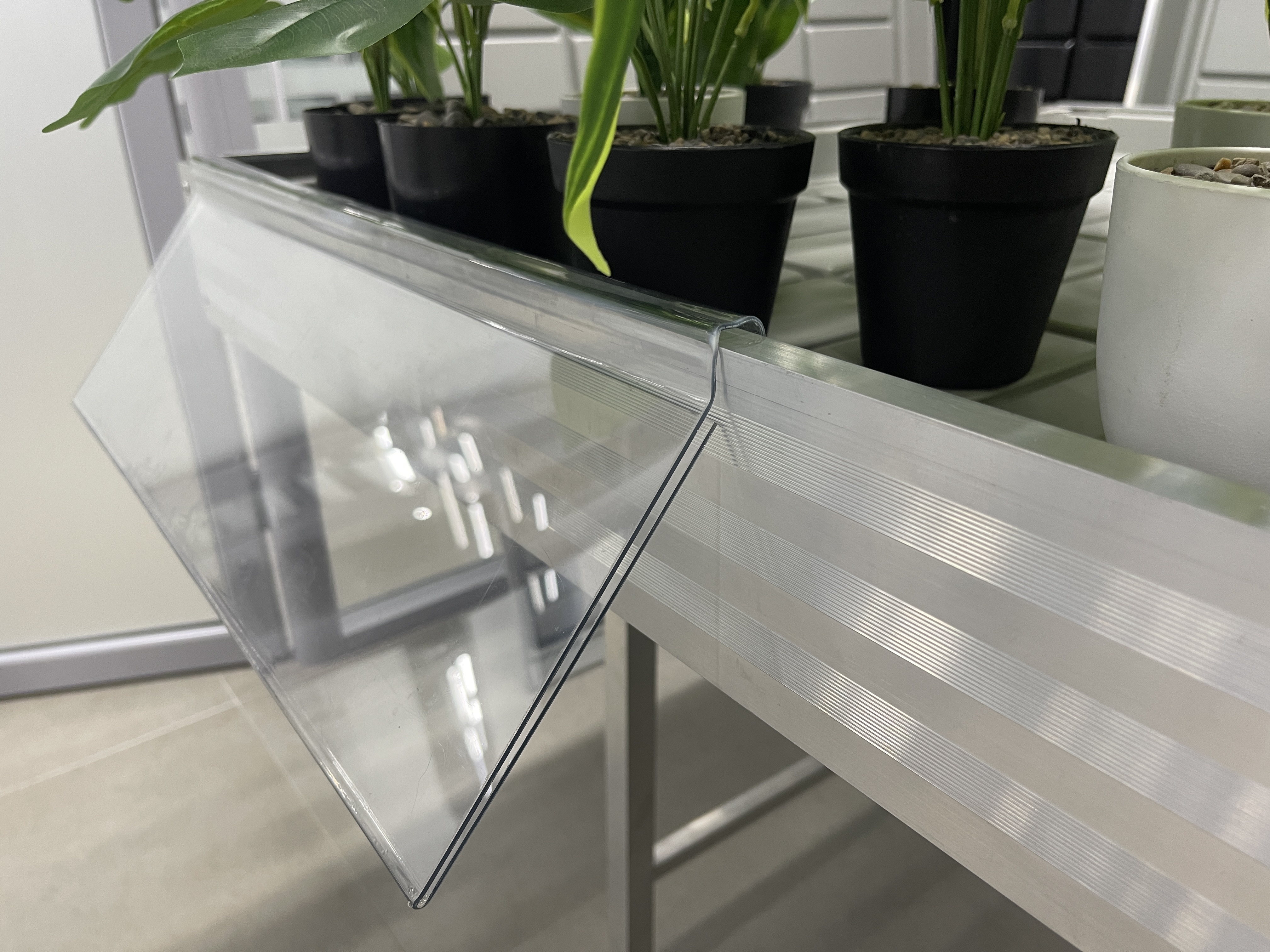 Отличная видимость: Наклон в 30° и прозрачность материала направляют взгляд покупателя прямо на ценник. Ширина ценника в 15 см позволяет крупно разместить всю необходимую информацию о товаре.